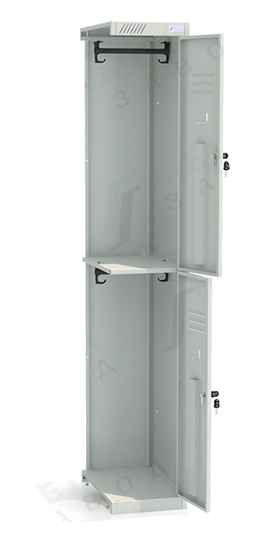 - В комплект шкафа ШРС-12, состоящего из двух ячеек, входят две перекладины для «плечиков», четыре одёжных крючка и два секретных замка.