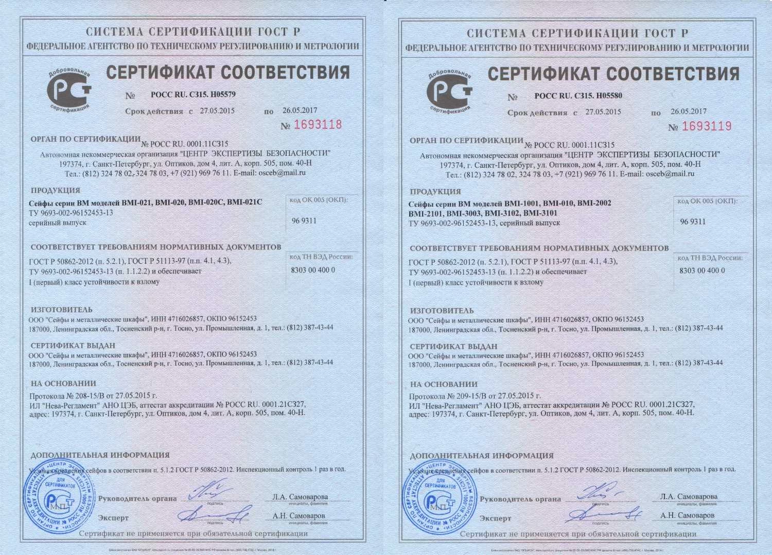 Сейф протестирован по стандартам ГОСТ Р 50862-2012 и ГОСТ Р 51113-97 и причислен к 1 классу взломостойкости и классу 30Б по устойчивости к огню (это означает сохранность бумаг при внешней температуре 1000 ºС в течение 30 минут). В сейфах данного класса предлагается хранить следующие суммы: до 3 млн. рублей – для индивидуальных владельцев; до 800 тыс. рублей – для юридических лиц.