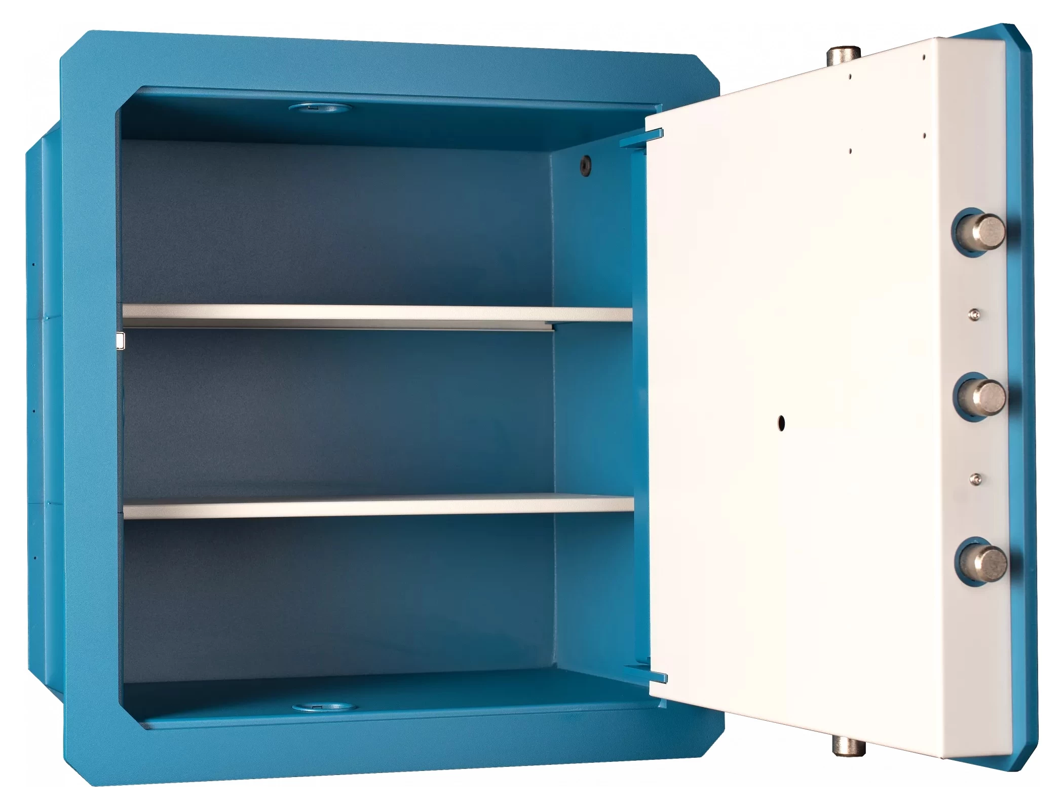 Для удобного и упорядоченного размещения ценностей предусмотрены две съёмные полки, разделяющие пространство сейфа на три уровня.